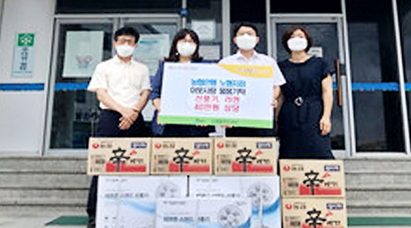 농협은행 노형지점(지점장 강권우)은 지난 달 30일 노형동주민센터를 찾아 어려운 이웃을 위해 선풍기 5대, 라면 5박스(40만원 상당)를 기탁했다. 이날 기탁된 물품은 노인, 장애인 등 생활이 어려운 이웃에게 전달될 예정이다.