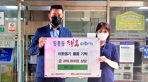 (주)진바이오(총괄부장 허정우)는 지난 3일 여름철 청결한 위생을 위해 어려운 이웃에게 전달해 달라며 서귀포시 동홍동에 20만원 상당의 세제를 기증했다.