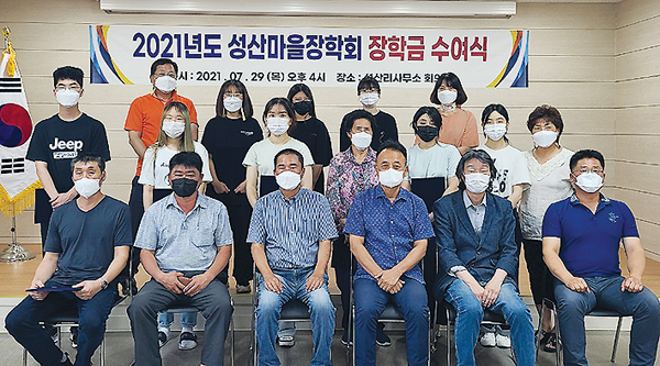 서귀포 성산리마을회(이장 임영철)는 지난달 29일 리사무소에서 성산마을장학회 장학생 12명에게 장학금을 전달하는 2021년도 장학금 수여식을 가졌다.