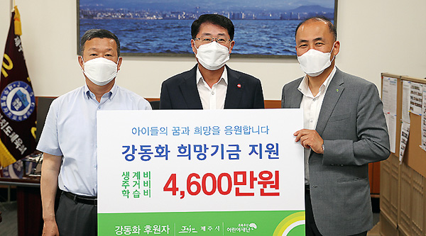 후원 기금은 지난 6월 강 대표의 1억원 기부로 조성됐으며 도내 지원이 필요한 아동 가정을 선정해 지원할 예정이다. 후원금은 제주시와 유관기관에서 발굴한 주거·생계·학습비 지원이 필요한 아동가정 18가정 등에 4600만원을 전달하게 된다.
