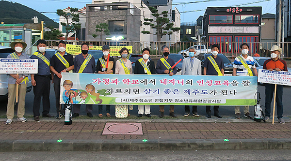 (사)제주청소년연합도지부 청소년유해환경감시단은 지난 7~9일 제주시 구좌읍 월정해수욕장과 삼양해수욕장에서 코로나19 방역 및 청소년 탈선예방 캠페인 활동을 전개했다. 이날 단원들은 음식점 등에 스티커를 배부하고 마스크 미착용 관광객들에게 마스크를 배부하는 등 유해환경 개선 캠페인 및 코로나19 대응 방역활동을 펼쳤다.