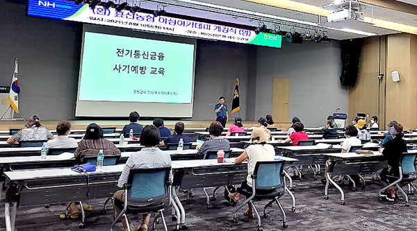 표선농협(조합장 고철민)은 지난 10일 NH농협은행 제주수련원에서 여성아카데미 교육생 40명을 대상으로 서귀포경찰서 안성태 표선파출소장을 초빙해 '전기통신금융사기 예방교육'을 실시했다.