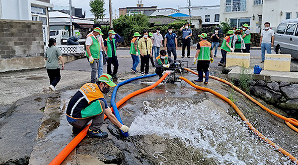 제주시 조천읍 자율방재단(단장 강철수)은 지난 13일 회원 30여 명 및 직원들이 참여한 가운데 재난대비 안전교육으로 양수기 사용방법 등 풍수해 대응훈련을 실시했다.