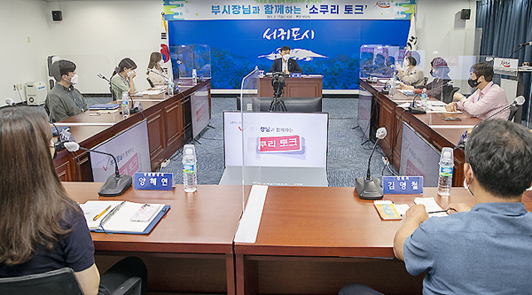 서귀포시는 지난 17일 제1청사 본관 셋마당에서 주니어와 시니어 공무원이 참여한 가운데 공직문화에 대해 이야기를 나누는 '8월 소쿠리 토크'를 개최했다.