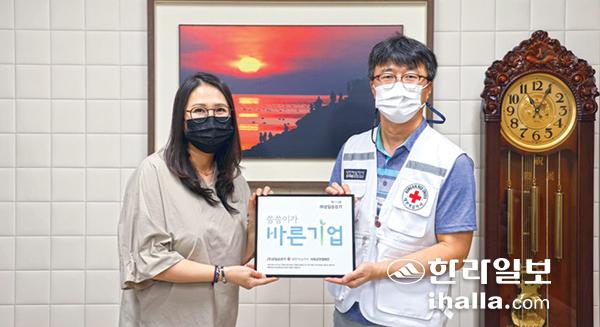 (주)삼일승강기(대표 양인실)는 지난 20일 대한적십자사제주특별자치도지사(회장 오홍식)에서 실시하는 '씀씀이가 바른기업'에 동참해 지역사회를 위한 따뜻한 나눔 실천을 약속했다. 삼일승강기는 매월 정기적인 기부를 통해 나눔 문화 확산에 동참하게 된다.