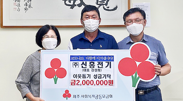 (주)신흥전기(대표 강경희)는 지난 20일 서귀포시 남원읍을 방문해 지역 내 취약계층을 돕는 데 사용해 달라며 성금 200만원을 기탁했다. 신흥전기는 2019년도부터 이웃돕기 성금을 기부하며 매년 이웃사랑을 실천하고 있다.