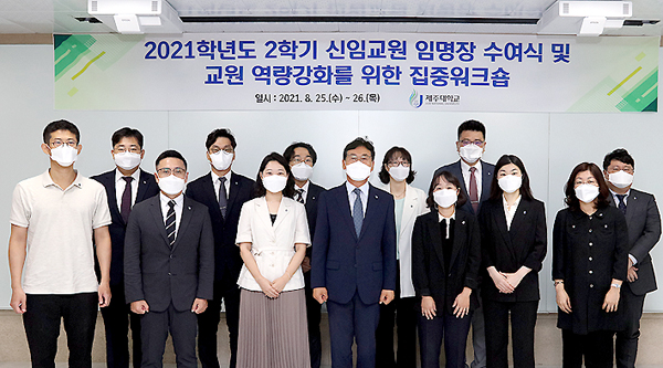 제주대학교(총장 송석언)는 25일 오는 9월 1일자 신규 전임교원 12명에 대한 임명장 수여식을 가졌다. 다음은 신규교원 명단. ▶전임 교원 ▷정민경(중어중문학과) ▷고제경(무역학과) ▷박문영(영어교육과) ▷김태경(윤리교육과) ▷정희중(물리교육전공) ▷김진호(지구해양과학과) ▷정광용(물리학과) ▷엄란이(패션의류학과) ▷양진아(생명화학공학전공) ▷이근영(초등국어교육전공) ▷박정우(초등과학교육전공) ▷강스텔라(초등음악교육전공).