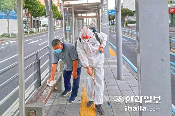 법무부 청소년범죄예방위원 제주지역협의회(회장 고영두)는 위원 50명이 참여한 가운데 지난 29일 새벽 제주시내 학교 주변의 버스정류장 등 다중이용시설에 대한 코로나19 감염병 예방 방역 봉사활동을 실시했다.