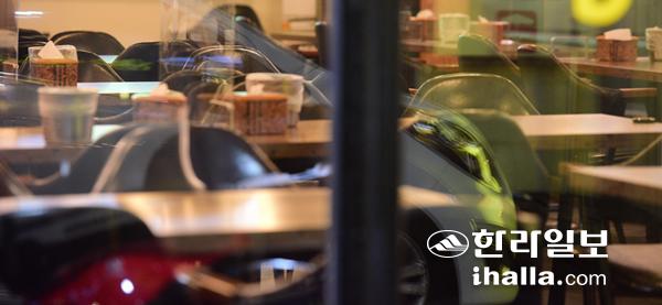 거리두기 4단계 시행으로 텅 빈 제주시내 대학로 식당. 한라일보DB