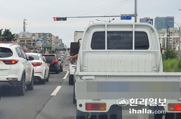 2일 제주시 연북로에서 한 운전자가 자신의 차량에서 흡연하고 있다.