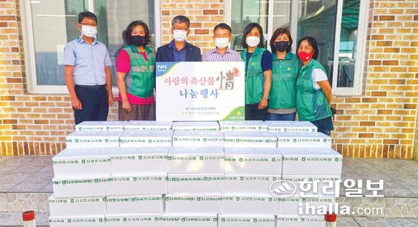 표선면새마을부녀회(회장 고태숙)와 서귀포시축산업협동조합(조합장 김용관)은 지난달 29일 10개 마을 독거노인 가구에 축산물을 전달했다. 이날 부녀회는 이날 '사랑의 축산물 정 나눔 행사'를 통해 500만원 상당의 돈육 불고기(250㎏)를 250가구에 전달했다.