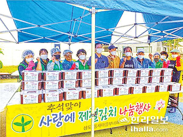 제주시 삼도1동새마을부녀회(회장 이영아)는 지난 10일 부녀회원 10명이 참여한 가운데 관내 저소득층 및 독거노인 40가구에 정성스럽게 담근 김치를 전달했다.