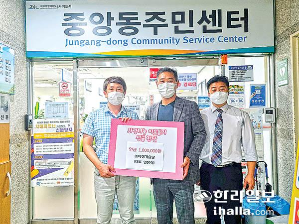 (주)아성기술단(대표 현봉식)은 지난 9일 서귀포시 중앙동주민센터를 방문해 다가오는 추석을 맞아 어려운 이웃을 위해 사용해달라며 성금 100만원을 기부했다.