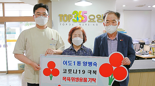 이도1동에 거주하는 양병숙(65)씨가 어려운 이웃을 위해 목욕위생용품을 기부하며 귀감이 되고 있다.
