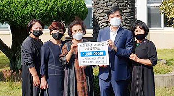 국제로타리3662지구 서귀포칠십리로타리(회장 현정열)는 지난달 28일 서귀포여자고등학교(교장 김월룡)에 학교발전기금 100만원을 기탁했다. 기금은 학업에 매진하고 있는 학생을 위한 장학금으로 지원될 예정이다.