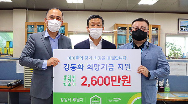강동화 대표는 "매월 지원 대상 아이들을 선발하고 지원하는 과정에서 도내 도움이 필요한 아동들이 많다는 것을 느낀다"며 "아이들이 건강하고 밝게 자랄 수 있도록 사회적 책임감을 갖고 지원할 수 있도록 노력하겠다"고 소감을 밝혔다.