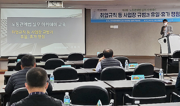 이번 아카데미는 기업환경 변화와 인사·임금제도 등을 주제로 사업장에서 발생할 수 있는 노사분쟁 예방을 위한 노동관계법에 대한 설명 등으로 진행됐다.
