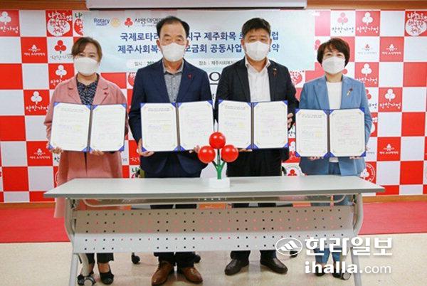 국제로타리 3662지구(총재 김하석)의 지원으로 제주늘해랑 로타리클럽(회장 이경렬)과 제주화목 로타리클럽(회장 허미숙)은 최근 모금회 나눔실에서 제주사회복지공동모금회(회장 김남식)와 도내 다문화 가정 지원 공동사업 협약을 체결했다.