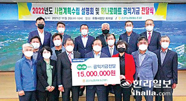 중문농협(조합장 김성범)은 지난 3일 중문농협 유통사업단지에서 하나로마트 공익기금 1500만원을 제주사회복지공동모금회(회장 강지언)에 기탁했다.