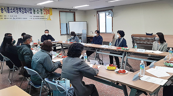 농림축산식품부와 제주도가 주최하고 한국부인회제주도지부(지부장 고순생)가 주관하는 '2021년 농식품 소비정책 강화사업 농·소·정 간담회'가 지난 10일 사회단체종합청사 3층 회의실에서 열렸다. 이날 생산자, 소비자단체, 농협, 행정, 명예감시원 등 15명이 참석해 로컬푸드 지역농산물 소비촉진 방향과 먹거리 선순환 체계 구축 추진 방향에 대해 논의했다.