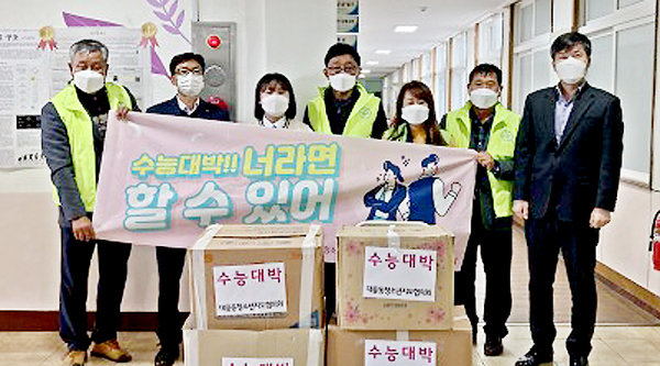서귀포여자고등학교(교장 김월룡)는 지난 8일 대륜동청소년지도협의회(회장 강영진)로부터 대학수학능력시험을 앞둔 고3 학생들을 위해 준비한 수능 대박 격려 물품을 전달받았다.