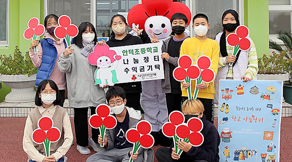 안덕초등학교(교장 고희옥)는 지난 15일 안덕초등학교에서 나눔장터를 진행해 마련한 성금을 제주사회복지공동모금회(회장 강지언)에 기탁했다. 이번 성금은 안덕초등학교 학생들이 직접 나눔 장터를 운영해 마련한 것이다.