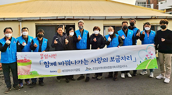 제주시 조천읍지역사회보장협의체(공동위원장 고영자·오효선)는 지난 16일 제주중부로타리클럽(회장 나필수)과 연계해 관내 주거환경이 열악한 저소득 독거노인 가구에 마루 보수 등 주거환경 개선 활동을 전개했다. 협의체는 앞으로도 민관이 소통하고 협력해 맞춤형 복지서비스 제공을 위해 지속적으로 지역의 기관·단체들과 함께 노력해 나갈 계획이다.