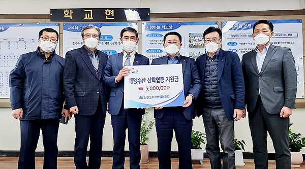 성산포수협(조합장 김계호)은 지난 14일 성산고등학교(교장 이창훈)를 방문해 수산업 및 어촌지역 우수인재 양성을 위한 해양수산 산학협동 지원금 500만원을 전달했다.