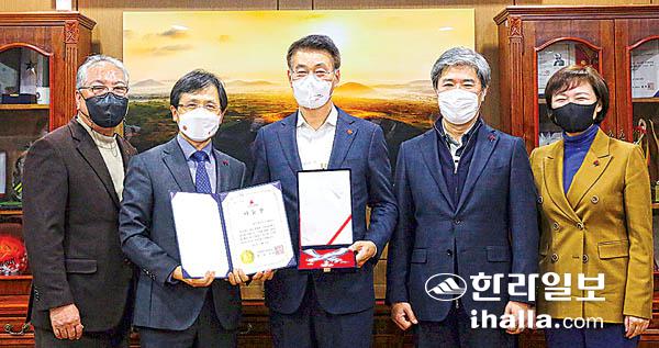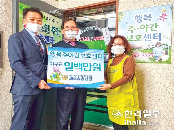 제주중앙신협(이사장 김태용)은 지난 22일 제주시 노형동 소재 행복주야간보호센터(원장 권근상)에 100만원의 기부금을 전달했다.