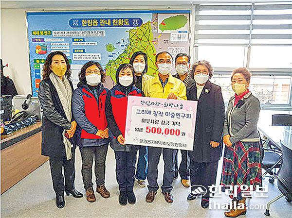 그리메 창작 미술연구회(회장 송순이) 회원 일동은 지난 20일 한림읍사무소를 방문해 취약계층에 전달해 달라며 50만원을 한림읍사회보장협의체에 기탁했다.