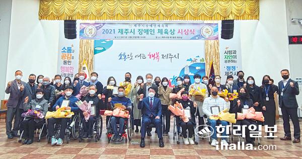 제주시장애인체육회는 23일 제주시청 제1별관 회의실에서 2021년도 제주시 장애인 체육상 시상식을 열었다.