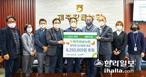 제주감귤농협(조합장 송창구)은 지난 24일 초록우산 어린이재단 제주지역본부(본부장 김희석)에 도내 소외 아동을 위해 써달라며 825만원을 전달했다.