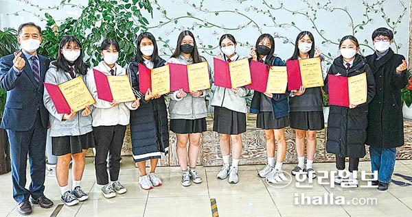 대정여자고등학교(교장 이영훈)는 지난 24일 교장실에서 '2021학년도 2학기 수선화 꿈·비전 장학금 전달식'을 가졌다. 이번 전달식에서는 2학년 문예진 학생 등 10명에게 장학증서와 장학금(20만원)이 전달됐다.