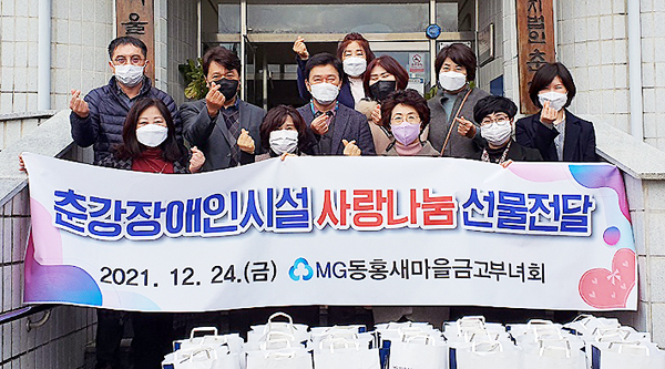 동홍새마을금고부녀회(회장 정순자)는 지난 24일 서귀포시 토평동 소재 춘강어울림터 장애인시설을 방문해 150만원 상당의 생필품 및 연말 선물을 전달하고 위로했다.