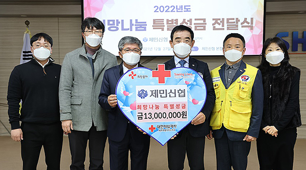 이번 기탁은 제민신협이 연말을 맞아 지역사회 소외계층을 돕는 일에 함께 참여하기 위해 이뤄진 것이다. 성금은 인도주의 사업에 사용될 예정이다.