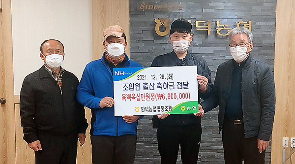 안덕농협(조합장 유봉성)은 지난 28일 조합장실에서 조합원 14명에 대한 출생축하금 660만원을 전달했다. 전달식은 사회적 거리두기 상황을 감안해 대상자 2명만 참석한 가운데 열렸고, 나머지 조합원에게는 비대면으로 지급했다.