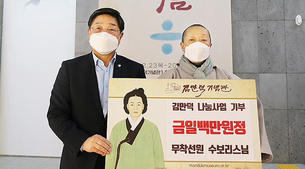 제주시 애월읍 하가리에 있는 무착선원의 수보리 스님은 최근 김만덕기념관에 사랑의 쌀 기부금 100만원을 기탁했다. 수보리 스님은 "코로나19로 인한 어려움을 우리 모두 함께 극복했으면 좋겠다"고 했다.
