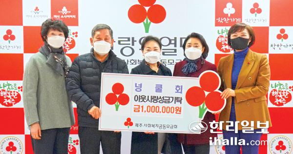 국제로타리3662지구 제주돌담로타리클럽 부인회인 '넝쿨회(회장 김미자)'는 최근 제주사회복지공동모금회(회장 강지언)를 방문해 어려운 이웃을 위해 사용해 달라며 성금 100만원을 기탁했다.