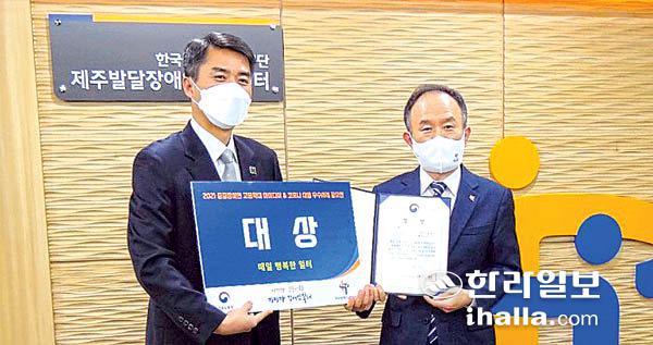한국장애인고용공단 제주지사(지사장 김대연)는 지난 5일 공단 제주지사에서 '2021 중증장애인 고용확대 아이디어 및 코로나 대응 우수사례 공모전' 대상으로 선정된 제주신화월드 행복공작소(주)에 상장(고용노동부 장관상)을 수여했다.