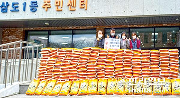 제주시 삼도1동 익명의 독지가는 지난 13일 삼도1동 관내 어려운 이웃을 위해 쌀 10㎏ 200포를 기탁했다. 이날 전달된 쌀은 관내 저소득가구 등 복지 취약가정에 전달될 예정이다.