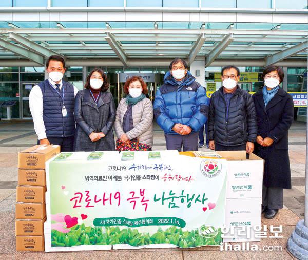 제주대학교병원(병원장 송병철)은 최근 (사)대한민국 스타팜 제주협의회(회장 부정선)로부터 300만원 상당의 농산품을 전달 받았다고 17일 밝혔다. 이번 격려 물품은 제주대병원 의료진을 응원하기 위해 전달됐다.