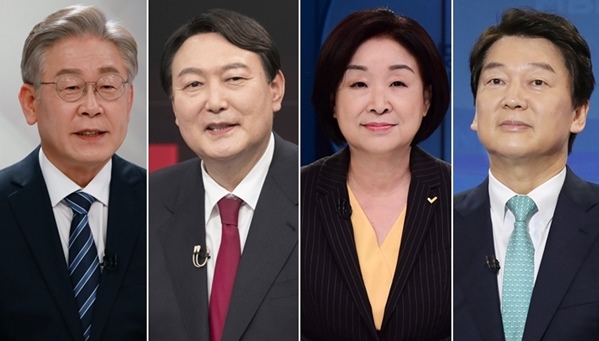 왼쪽부터 이재명 윤석열 심상정 안철수 대선후보.