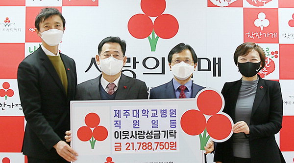 제주대학교병원(병원장 송병철) 직원일동은 지난달 27일 제주사회복지공동모금회(회장 강지언)를 방문해 십시일반 마련한 성금 2178만8750원을 기탁했다.