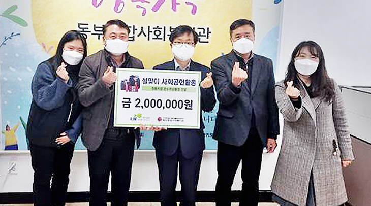 LH제주지역본부(본부장 강기관)는 지난달 27일 서귀포시 성산읍에 소재한 서귀포시동부종합사회복지관에 저소득가구의 설 명절 지원금 200만원을 기부한 것을 비롯해 보육원, 가정폭력피해자 공동생활가정, 장애인복지관에 총 1000만원을 전달했다. 전달금은 도내 소상공인과 재래시장 등의 상권 활성화를 위해 전액 온누리상품권으로 제공했다.