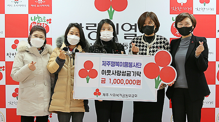 새터민들이 주축으로 구성된 제주행복이음봉사단(단장 김금희)은 지난달 27일 이웃들을 위해 사용해 달라며 이웃사랑 성금 100만원을 제주사회복지공동모금회(회장 강지언)에 기탁했다. 이번 성금은 제주행복이음봉사단 회원들이 십시일반 마련한 것이다.