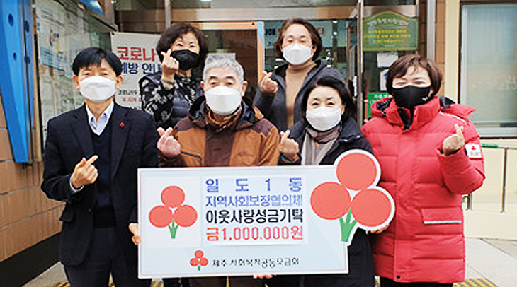 제주시 일도1동지역사회보장협의체(위원장 김명곤)는 지난달 27일 제주시 일도1동에 이웃사랑 성금 100만원을 기탁했다. 성금은 설 명절을 맞아 위원들의 적극적 동참으로 마련됐으며, 관내 어려운 이웃들에게 전달될 예정이다.