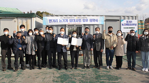중문농협(조합장 김성범)과 서귀포농업기술센터(소장 문선희)는 지난 3일 중문농협 자재센터에서 농기계 임대사업의 효율적 운영과 농업인의 편리한 영농환경 조성을 위해 농기계 임대사업 업무 협약식을 개최했다. 이번 협약식을 통해 소형 파쇄기 10대를 추가 비치하게 되면서 서귀포 서부지역(중문, 예래, 대천)의 높은 농기계 임대 수요를 해소할 전망이다.