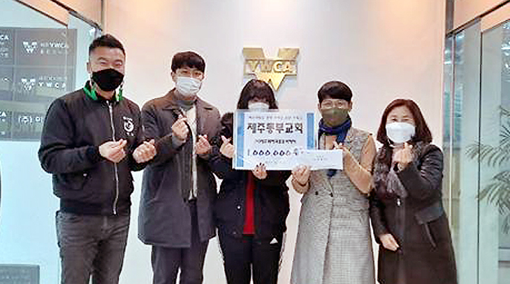(사)제주YWCA(회장 고미연)는 지난 4일 제주YWCA 회관에서 제주동부교회와 청소년활동 공간 마련을 위한 후원금 전달식을 가졌다.