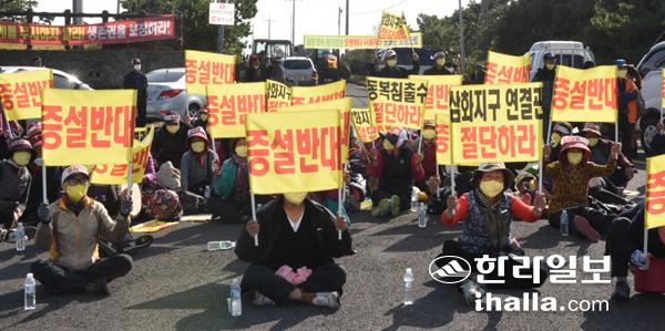 동부하수처리장 증설 반대하는 월정리 주민들.