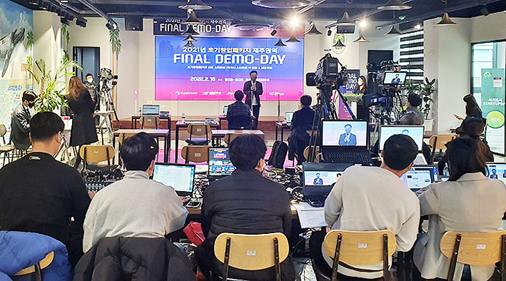 서귀포시와 서귀포시 스타트업베이(센터장 김영록)는 지난 18일 스타트업베이에서 2021년도 초기창업패키지 참여기업 20개 업체를 대상으로 참여기업의 투자유치 기회 제공을 위한 '파이널 IR 데모데이' 기업 투자설명회를 개최했다. IR 데모데이는 스타트업이 투자자에게 자사의 사업모델을 공개하고 투자 유치를 위해 기업 홍보, 설명하는 행사다.